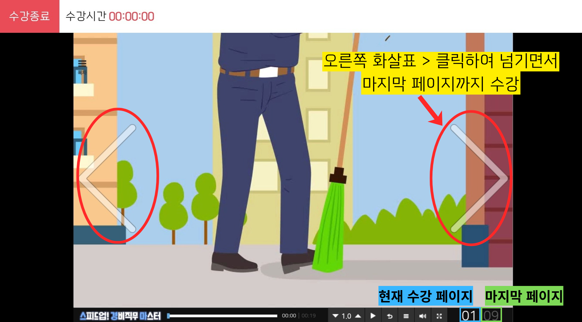 ※ (모바일) 경비직무교육 수강 화면
